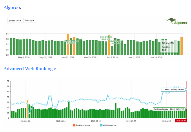 Potrebbe, invece, essere un scossone dovuto all’aggiornamento principale di giugno o potrebbe trattarsi di un aggiornamento dell’algoritmo completamente diverso di cui Google non vuole parlare, magari qualcosa di correlato alla lotta dello spam nei risultati di ricerca.